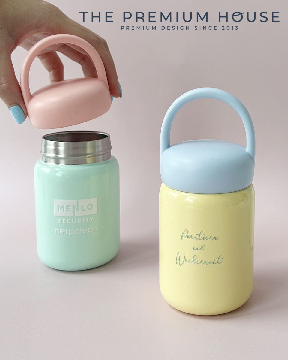 กระติกน้ำโทนสีน่ารัก ขนาดเล็กพกพาง่าย รูปทรงสวย ฝาหูหิ้วปิดแน่น